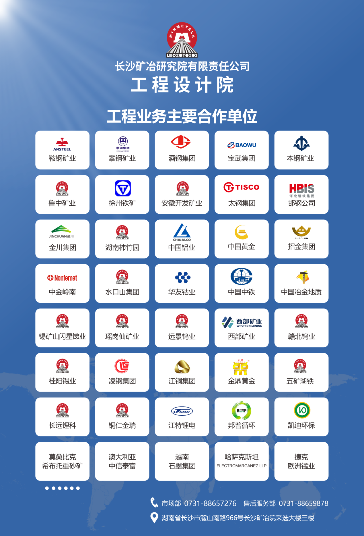院工程業(yè)務始于1985年,擁有冶金行業(yè)、化工工程、建筑工程、環(huán)境工程及工程咨詢評價等工程設計和咨詢資質,長期從事冶金礦山、新能源材料和環(huán)保等行業(yè)的工程咨詢、工程設計及工程總承包業(yè)務,業(yè)務遍及全國以及南美洲、歐洲、非洲、東南亞和澳大利亞等地區(qū)。