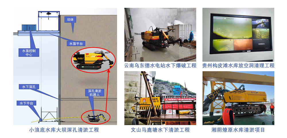 主要應(yīng)用場(chǎng)景:水庫(kù)大壩孔洞淤積清理;市政管涵清淤;深水淤積物清理;水下特殊作業(yè)及監(jiān)測(cè)。